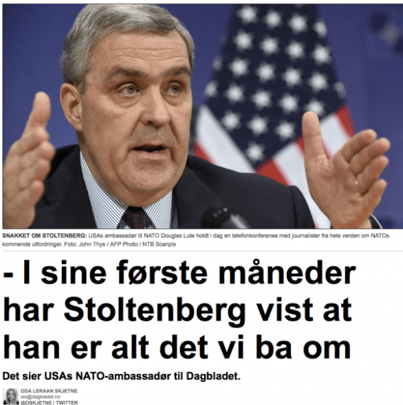 USAs NATO-ambassadør er ualminnelig fornøyd med Jens Stoltenberg.